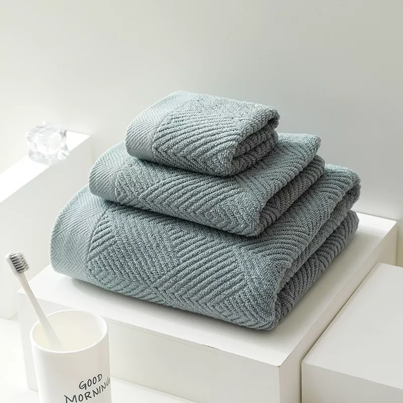 3-Piece Cotton Bath Towel & Face Towel Set – Soft, Quick-Dry, Solid Colors