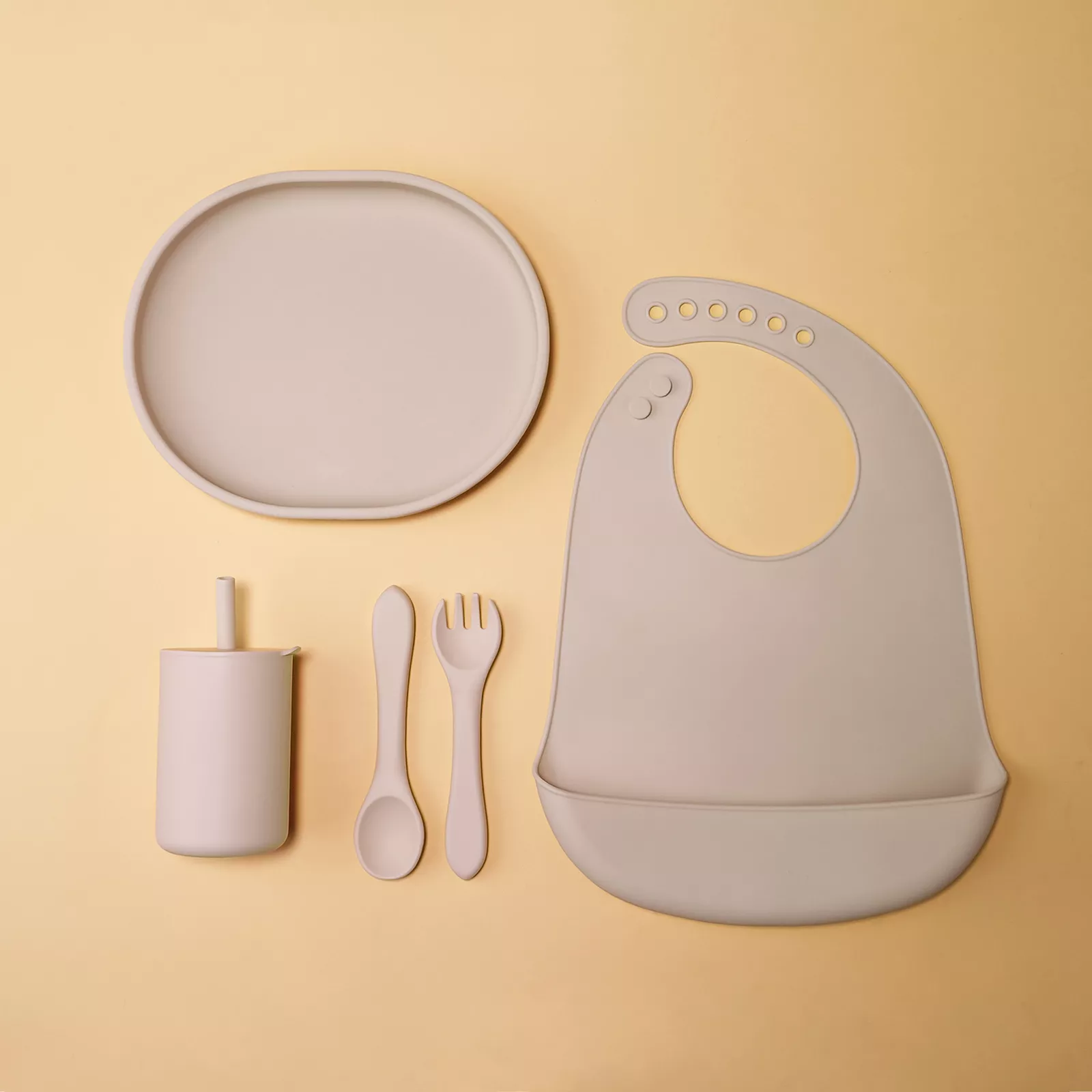 Turn every meal into a stress-free experience with this 5-piece Baby Silicone Feeding Set. Designed with little hands in mind, this set helps your baby practice independence while giving parents peace of mind. From the suction plate that stays in place to the soft bib with a built-in food catcher, this set has everything you need to make mealtime cleaner, safer, and more enjoyable.