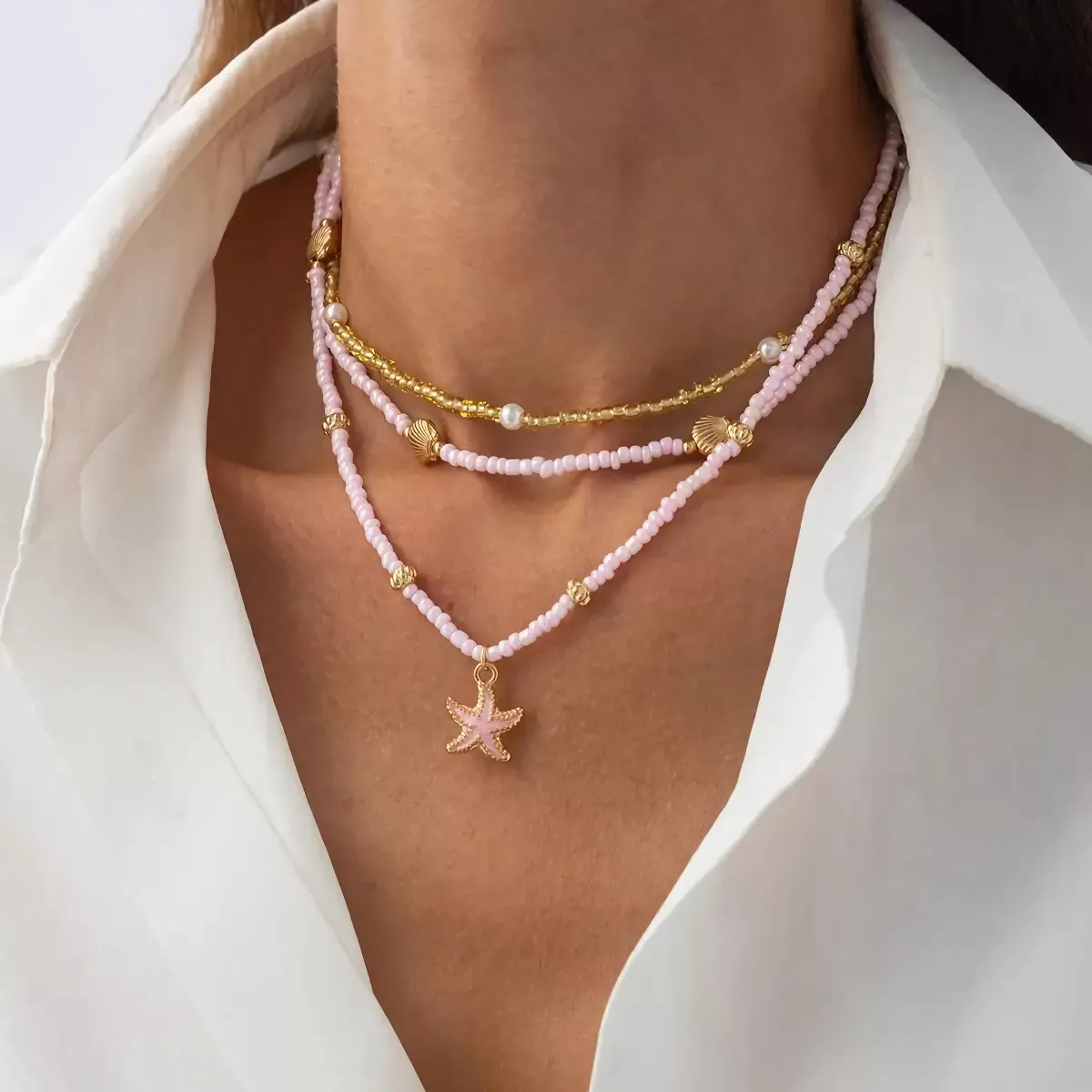 Step with effortless style. This stunning 3-piece boho layered necklace set is designed to capture the free-spirited essence of the beach while adding a touch of elegance to any outfit. With delicate handmade beads, a scallop pendant, and a starfish charm, this jewelry set brings coastal vibes straight to your wardrobe. Perfect for vacations, beach days, or parties, these necklaces instantly elevate your look and make you feel radiant.