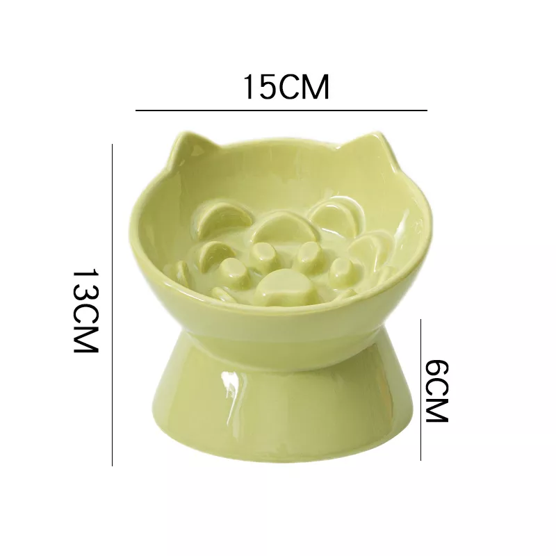 Ceramic Elevated Cat Bowl with Slow Feeding Design and Neck Protection