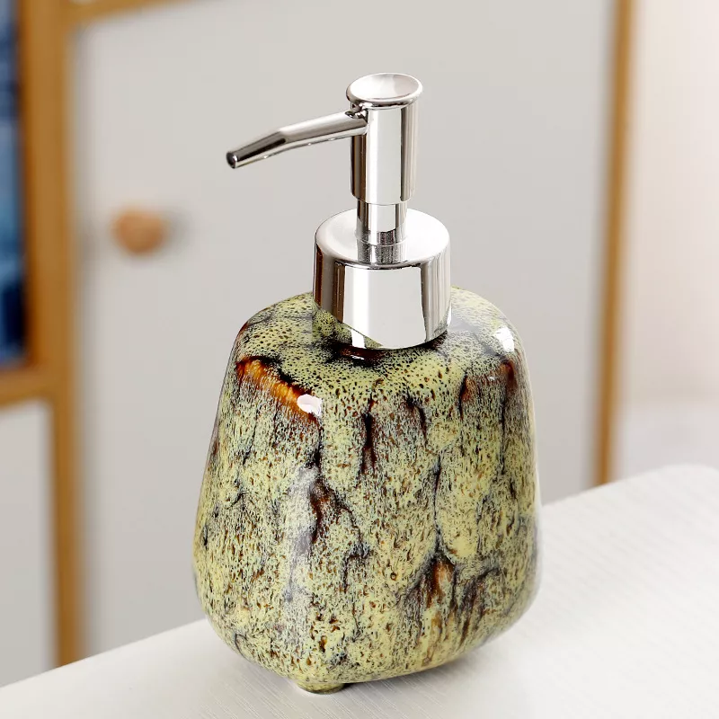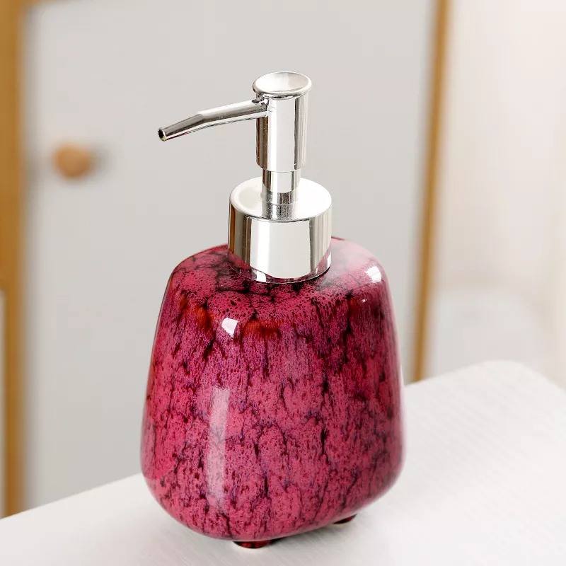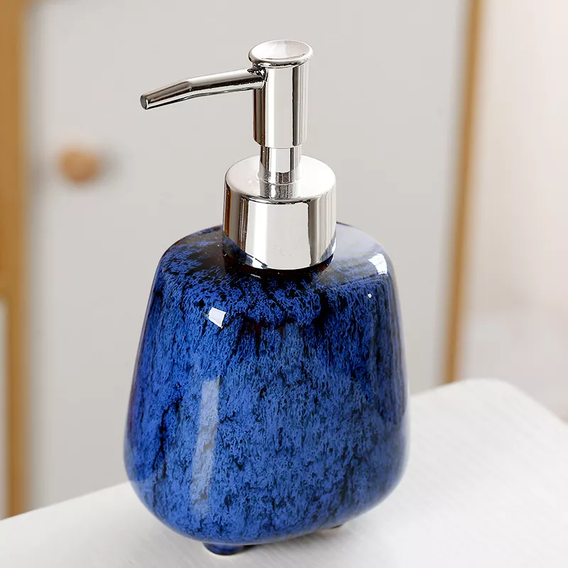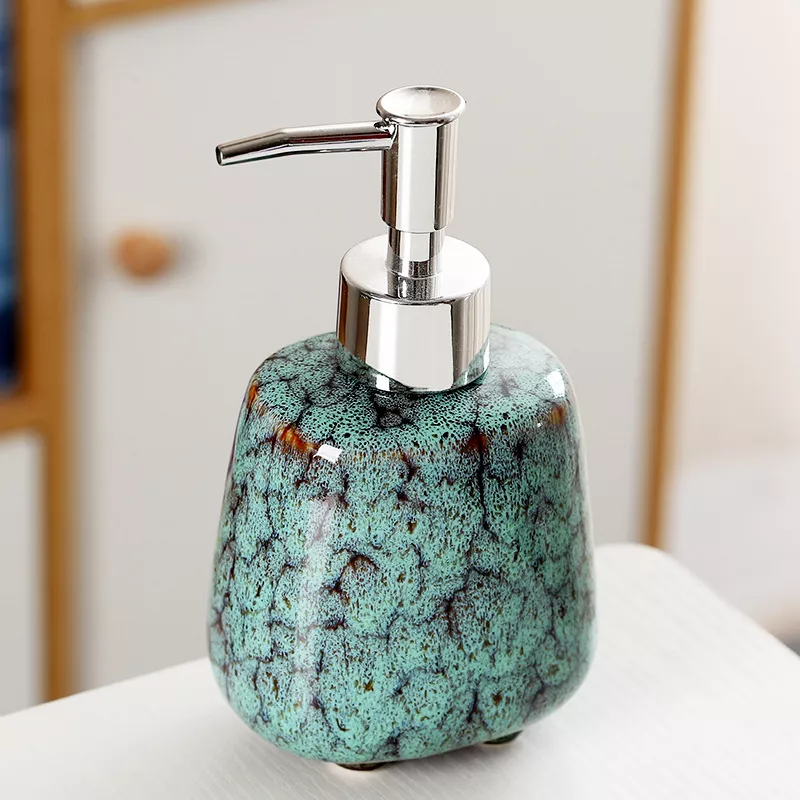 Upgrade your bathroom or kitchen with this 300ml ceramic soap dispenser, crafted with a beautiful kiln-change finish that gives every piece a unique and artistic touch. Designed for both style and durability, it features a sturdy stainless steel pump head that resists rust and ensures smooth dispensing every time. Perfect for liquid soap, hand wash, shampoo, shower gel, or lotion, this refillable bottle brings both functionality and charm to your daily routine.