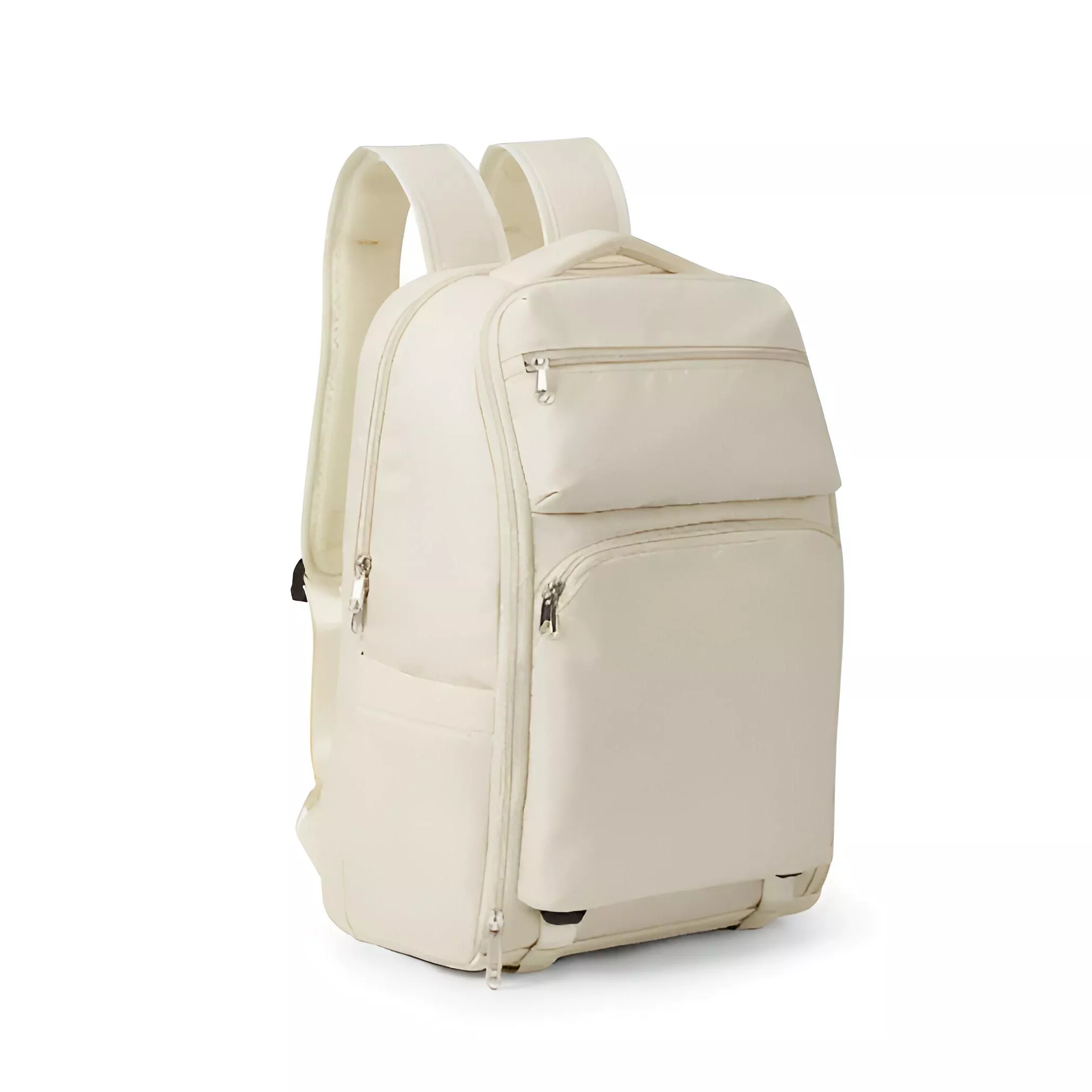 With a spacious main compartment and multiple pockets, this backpack easily holds your essentials. It comfortably accommodates laptops up to 15.6 inches, making it a reliable companion for both work and study. The curved shoulder straps are designed for all-day comfort, even when carrying heavier loads. Available in classic black or beige, it blends effortlessly with both casual and professional outfits.