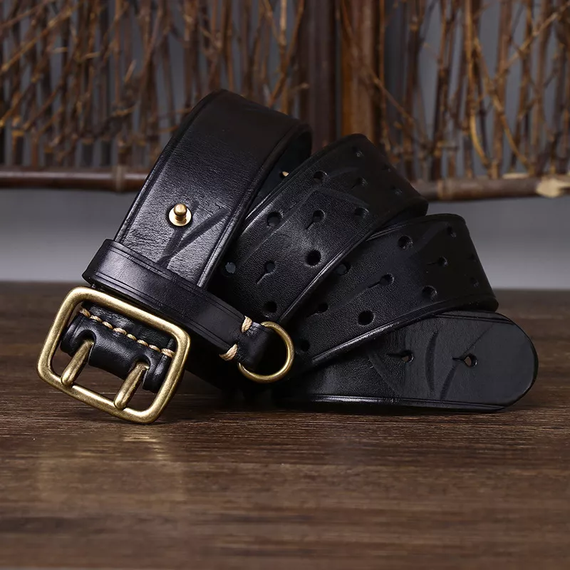 This belt is built to stand out with high-quality craftsmanship and attention to detail. The smooth cowhide leather is thick yet flexible, ensuring a comfortable fit that molds to your shape over time. The sturdy double copper buckle not only adds style but also provides superior hold, making it a reliable choice for daily wear.