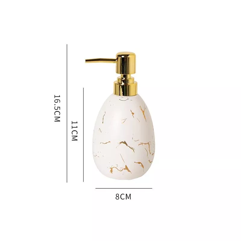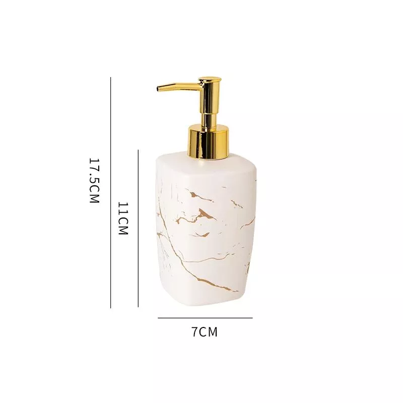 More than just a dispenser, this product combines beauty with functionality. Crafted from durable ceramic, it is built to last while maintaining its luxurious shine. The high-quality golden press pump ensures smooth and effortless dispensing, while the marble-like design adds a high-end feel without overwhelming your space. Whether used for hand soap, lotion, shampoo, or shower gel, it offers a versatile solution with unmatched style.