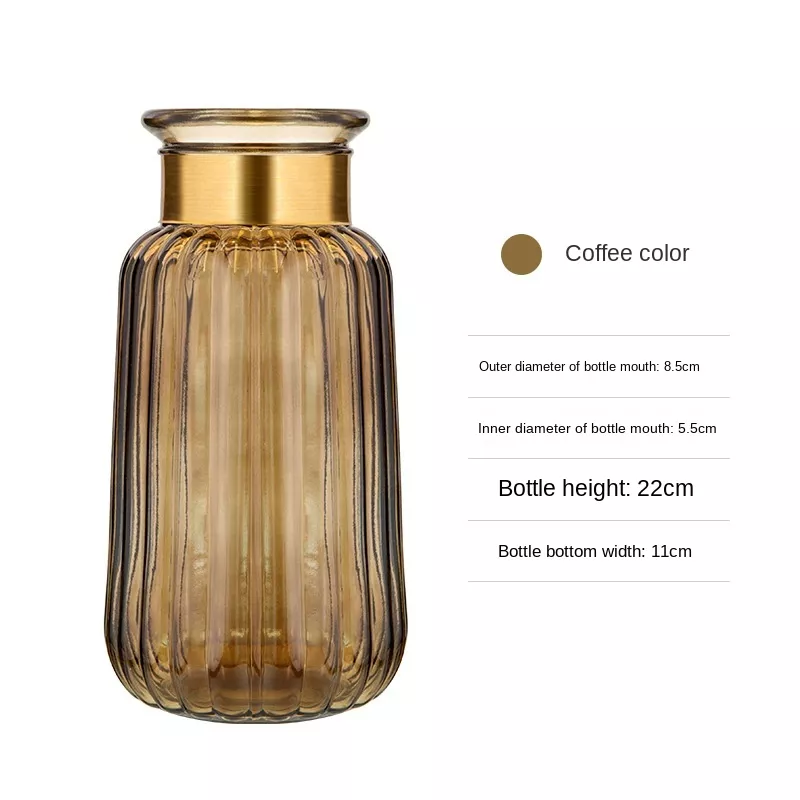 Transform your living space with this Nordic Light Luxury Glass Vase, a true statement piece for any room. The clean, modern design and subtle golden accents add a touch of sophistication, making it perfect for any contemporary decor. Whether placed on a dining table, in your living room, or as a centerpiece on a shelf, this vase brings an effortless elegance to your home.