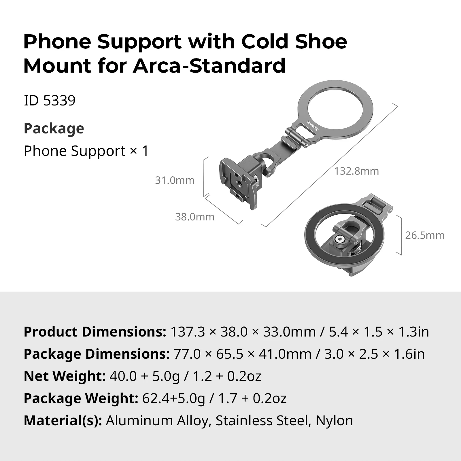 Take your mobile content creation to the next level with this foldable phone support designed for versatility and performance. Built with a multifunctional Arca-Standard baseplate and an integrated cold shoe mount, it works seamlessly with DJI RS 4 Mini, Arca-type tripods, and cameras. Whether you’re vlogging, live streaming, or shooting on the move, this phone support gives you the stability and flexibility you need. Its compact and lightweight design makes it the perfect travel companion for creators who demand professional results without the bulk.