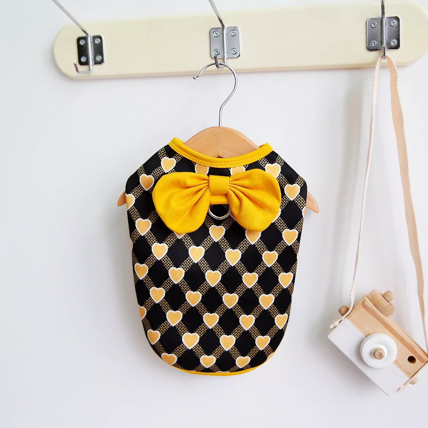 Your dog deserves to look and feel special, and this love-patterned shirt with its oversized bowknot does just that. Order today and give your furry friend the outfit they’ll love to show off.