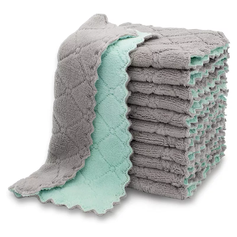 The unique double-layer coral fleece design offers superior cleaning power without being heavy or difficult to handle. Their soft texture is gentle enough for your skin while tough enough to tackle grease and stains. Plus, their modern, simple look makes them a practical yet attractive addition to your kitchen essentials.