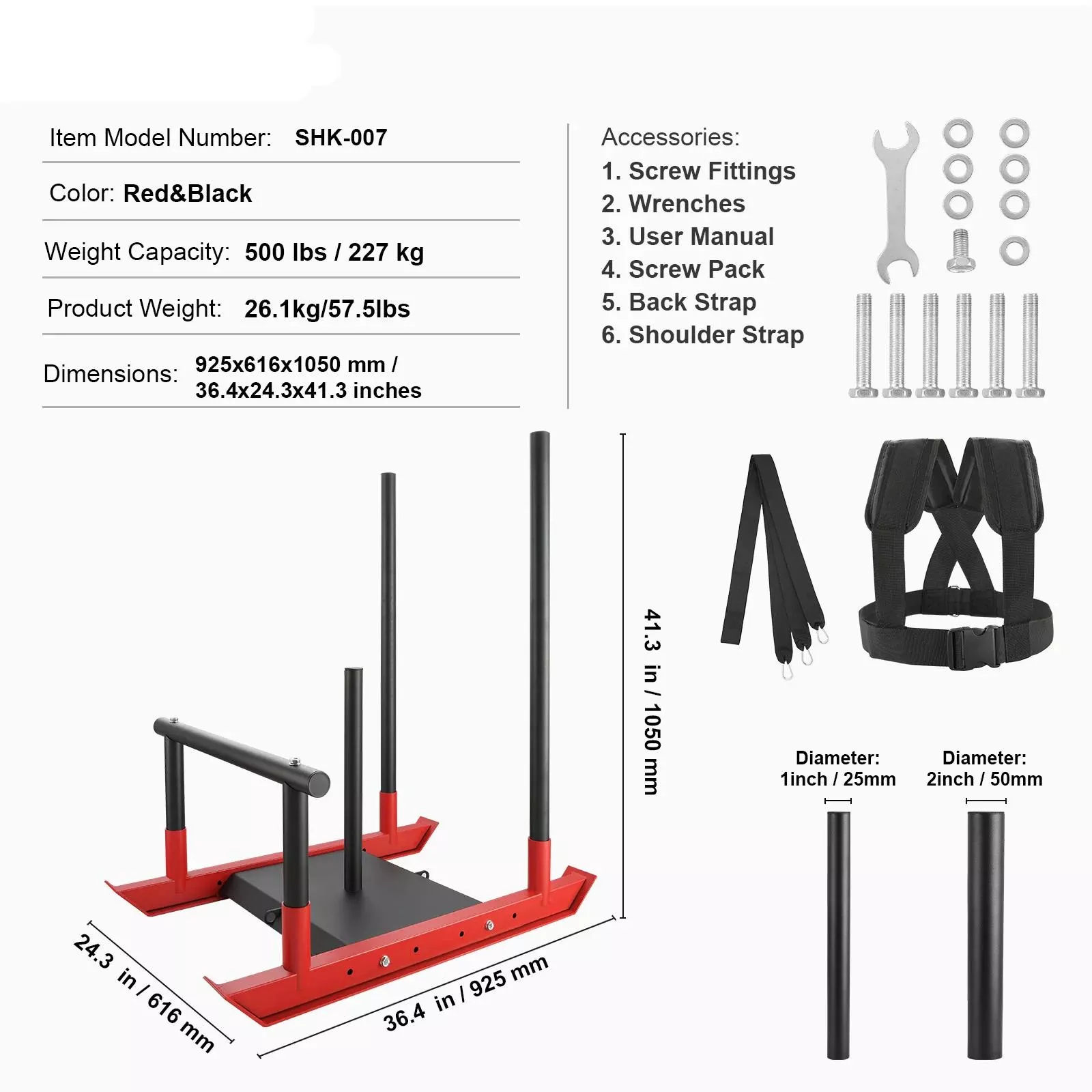 Crafted from high-quality steel with a protective outdoor powder coating, this sled is built to handle heavy use indoors or outdoors. The fully welded support bars and thickened bolts ensure maximum stability and strength, while its impressive 500 lb capacity lets you load up and push your limits with confidence.