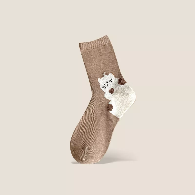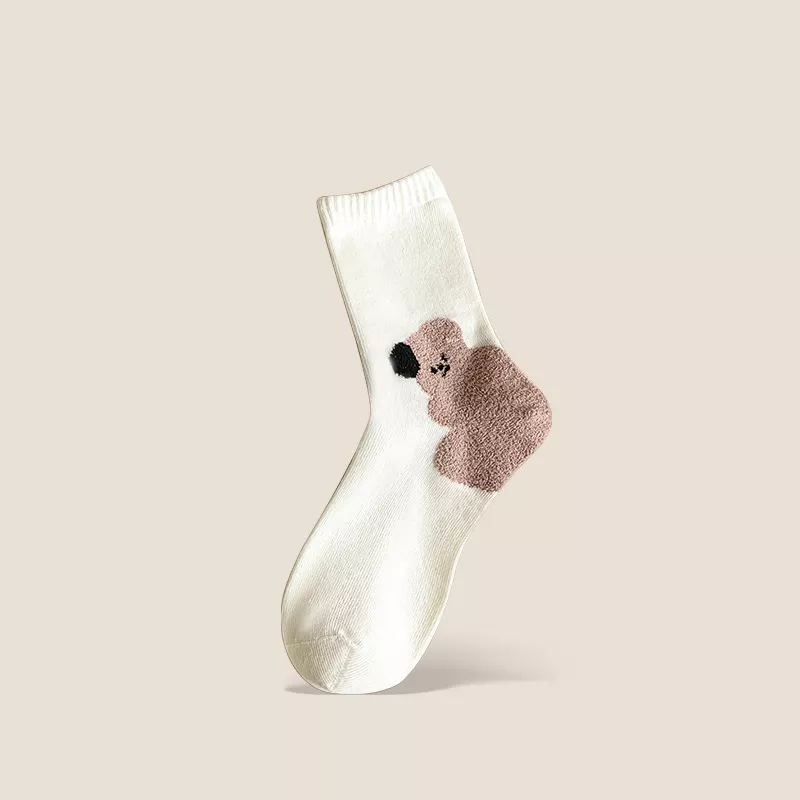 These socks aren’t just functional—they’re fashion with personality. The adorable bear flocking pattern brings a whimsical vibe that brightens up your look, while the smooth knit ensures all-day comfort. Unlike plain socks, these offer a unique blend of charm and practicality, making them a delightful addition to your wardrobe or a thoughtful gift for someone who loves cute and cozy accessories.