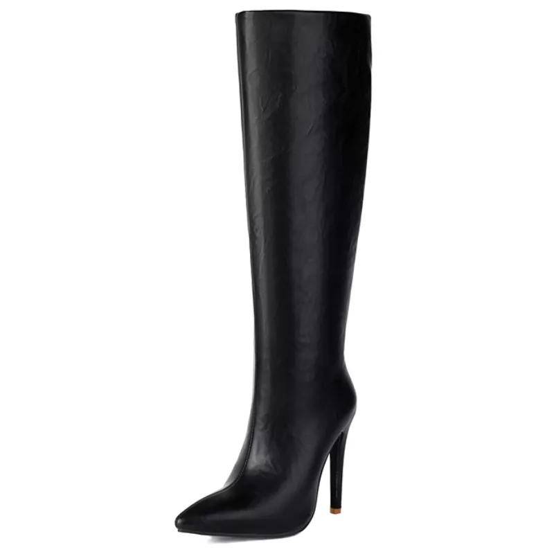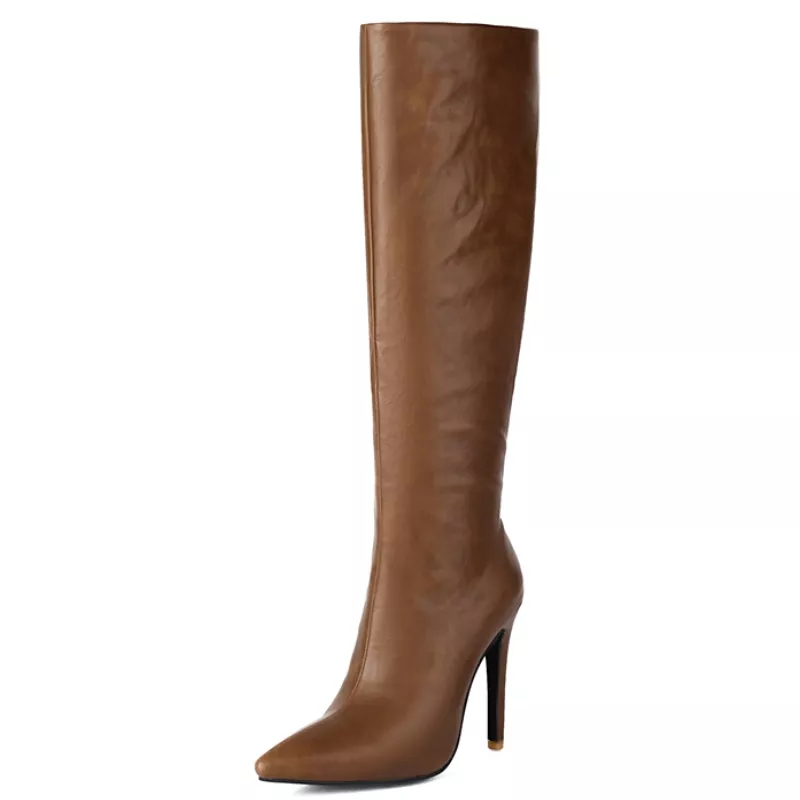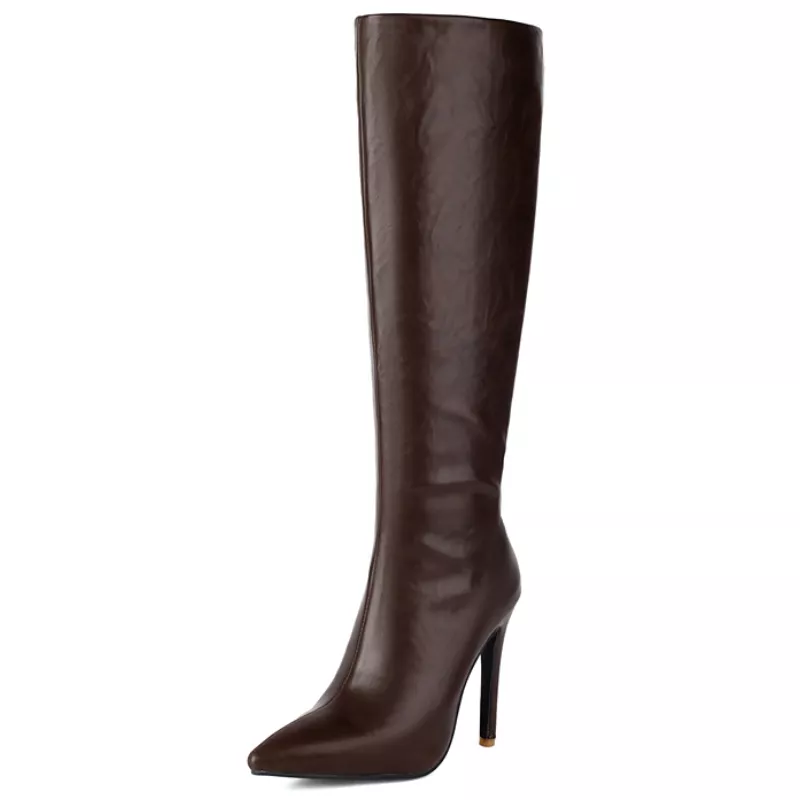 Turn every step into a statement with these stunning women’s knee-high boots. Designed with a sleek pointed toe, ultra-high 4.3 inch heel, and smooth PU leather finish, these boots deliver the perfect mix of elegance and bold style. Available in classic black or rich brown, they are your go-to footwear for parties, nights out, and any occasion where you want to stand tall and stand out.