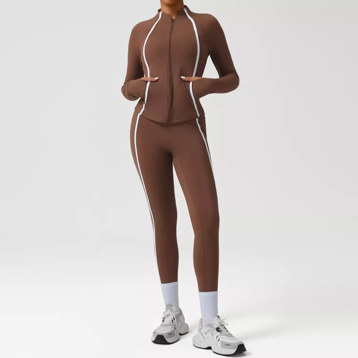 This activewear set is made from a premium blend of nylon and spandex, giving it exceptional elasticity and comfort. The bra coat offers breathable support, while the leggings feature a butt-lifting design that enhances your natural shape. With a lightweight and seamless finish, you can enjoy unrestricted movement during every workout.