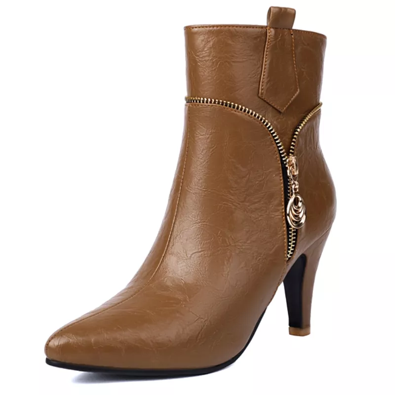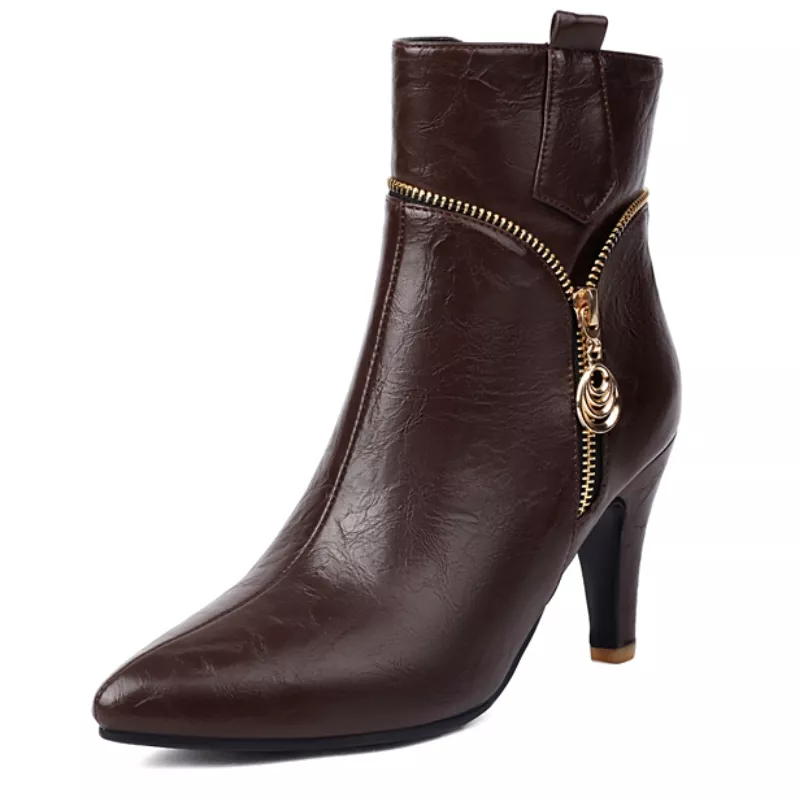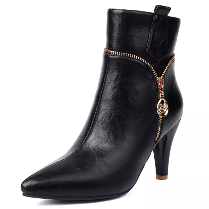 Women’s Zipper Ankle Boots High Heel Pointed Toe
