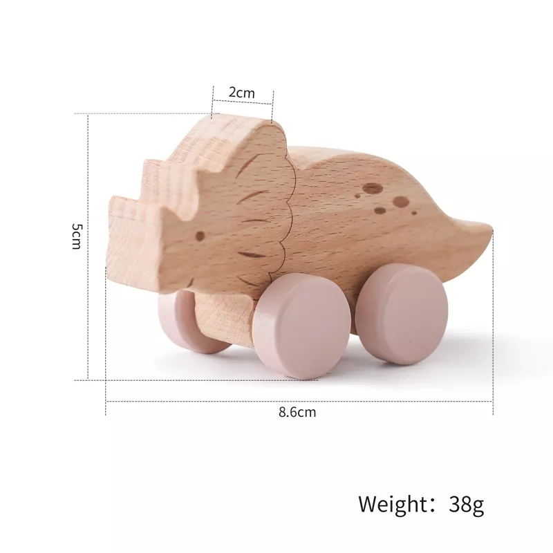 Wooden Baby Teething Toy – Beech Wood Dinosaur Car Puzzle Block for Toddlers